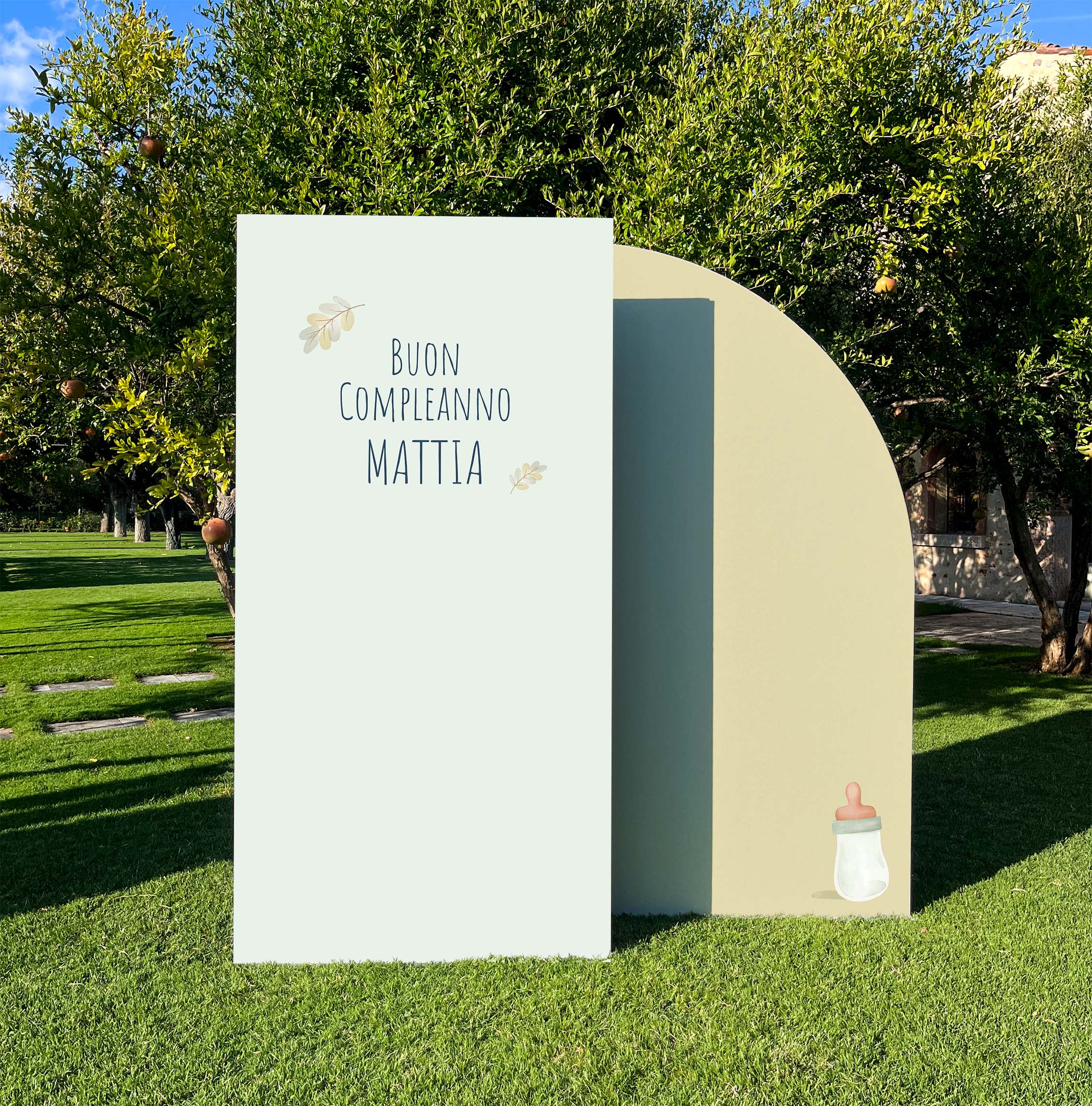 Lo Stand Foto viene realizzato su misura con il testo da te scelto (è sempre possibile abbinarci la scritta sagomata in due diverse misure da attaccare direttamente al pannello, basta acquistarla alla voce “Nome sagomato”).
